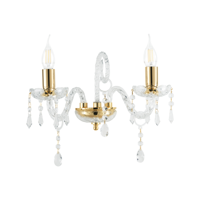MARIATERESA Wandleuchte aus handgeflochtenem Glas mit Goldoberflächen und transparenten Kristallen.