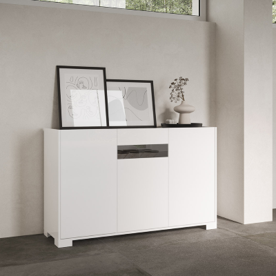 ROJAS Hochglanzweißes Holz-Sideboard mit 3 Türen mit Rauchglaseinsatz 130 cmROJAS Hochglanzweißes Holz-Sideboard mit 3 Türen mit Rauchglaseinsatz 130 cmROJAS Hochglanzweißes Holz-Sideboard mit 3 Türen mit Rauchglaseinsatz 130 cm