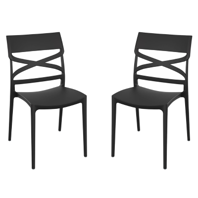 MIROK Schwarzer stapelbarer Stuhl aus Polypropylen für drinnen und draußen, 2er-Set