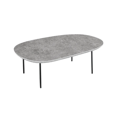 Couchtisch mit geformter Platte aus Cemento-Holz und Metallgestell – FLUX Large