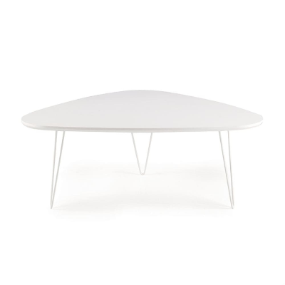 NICO moderner Couchtisch aus Holz mit lackierter Metallstruktur und geformter Platte.