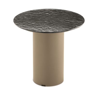 Runder Couchtisch WAYLON 45 mit beiger Metallbasis und Fumè-HammerglasplatteRunder Couchtisch WAYLON 45 mit beiger Metallbasis und Fumè-Hammerglasplatte