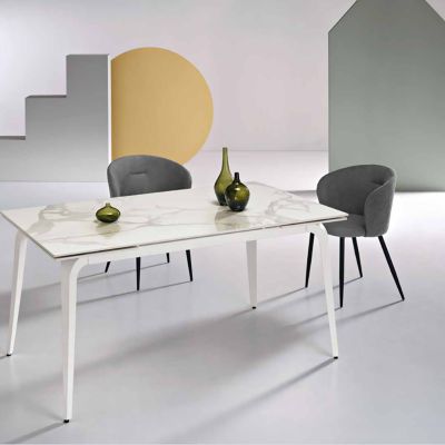 FELIX rechteckiger Esstisch mit modernem Design aus gesintertem Stein mit Marmoreffekt.