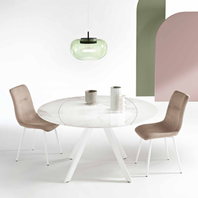RUNDER Esstisch mit modernem Design aus gesintertem Stein mit Marmoreffekt.