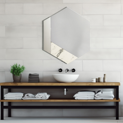 Charlie Mirror 70x80 cm with decorations in laminate white marble effect, silver leaf and light mirror.