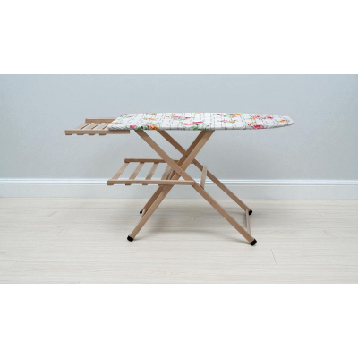 Beech wood ironing board with wooden boiler holder.