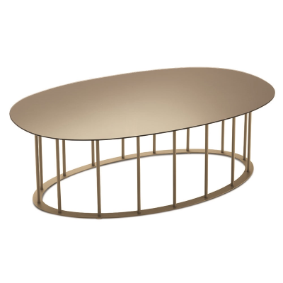 Mesa de centro D90 cm con base de metal Beige y tapa de cristal MUTE Bronce
