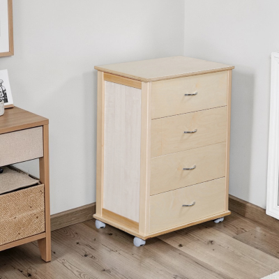 Cajonera con ruedas ICON H83 cm en Madera de Haya con 4 Cajones Natural.