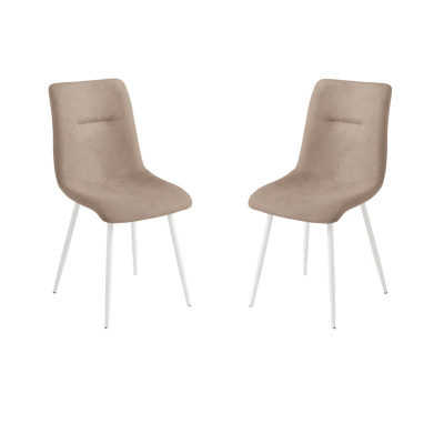 Chaise de salle à manger en tissu gris tourterelle pieds métal blanc - MANDY 2 chaises