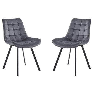 Chaise de salle à manger en velours gris foncé et pieds en métal noir - Roma 2 chaises