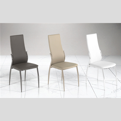 Assise et dossier rembourrés pour un maximum de confort, sans négliger le style grâce à ses lignes et à la luminosité donnée par sa structure chromée.