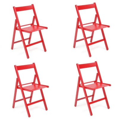 Set 4 chaises pliantes en bois de grève de luxe de couleur rouge