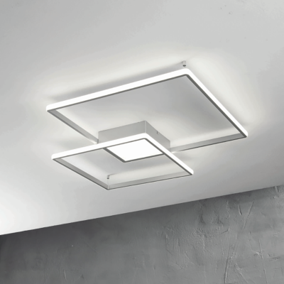 Le plafonnier DOWEL est entièrement réalisé en métal peint, et est composé de deux carrés contenant chacun une source LED dimmable.