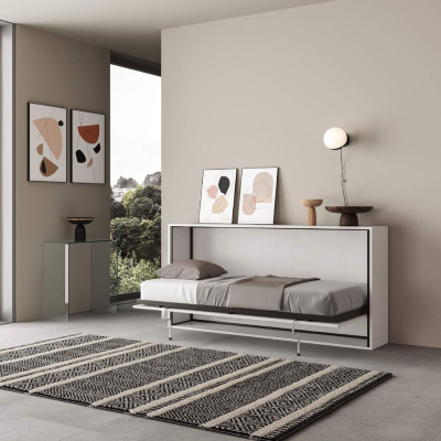 Lit escamotable horizontal Kando version simple. Une solution peu encombrante pratique et originale qui vous permet de tirer le meilleur parti de chaque centimètre de surface, permettant la possibilité; transformer un espace de vie en un espace de couchage en quelques étapes simples. Idéal également pour ceux qui disposent d'un espace limité.