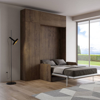 Lit français escamotable 140 cm avec meuble en noyer KENTARO SOFÀ