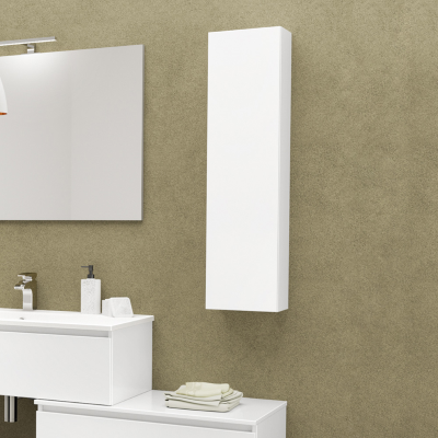 Meuble de salle de bain suspendu en bois blanc brillant, 25 x 18 x H 100 cm, 1 porte - Meuble de salle de bain suspendu en bois blanc mat, 25 x 18 x H 100 cm, idéal pour les espaces modernes.