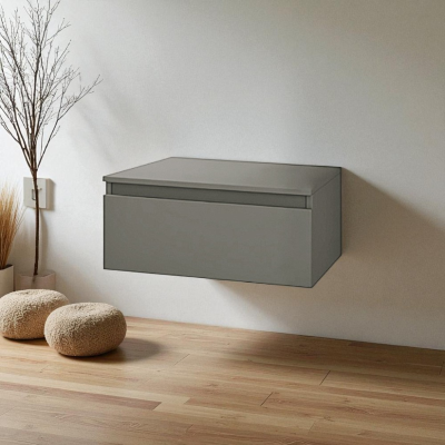 Tiroir de salle de bain suspendu 60 cm NILYA en panneau mélaminé Argile Mat