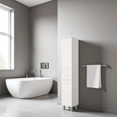 Colonna singola a terra GAIA con 2 ante e 1 cassetto H195 Bianco LucidoColonna singola a terra GAIA con 2 ante e 1 cassetto H195 Bianco Lucido