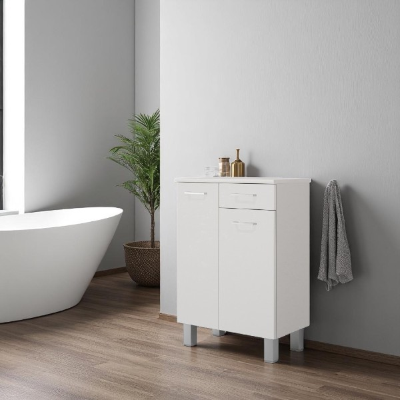Mobile multiuso 60x34 con ante e cassetto GAIA Bianco Lucido