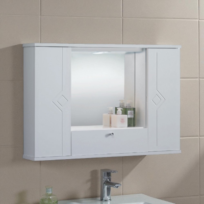 La specchiera da bagno MERCURIO ha uno specchio installato all'interno di una struttura in legno bianco lucido, adatto per completare una composizione dal design classico ma non banale.