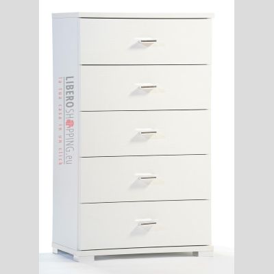 Cassettiera realizzata in legno Nobilitato,dotata di 5 cassetti con maniglie e piedini cromati.