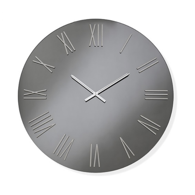 Orologio da parete SEAN in cristallo Fumè con lancette Argento e numeri romani serigrafati Argento.