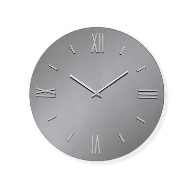 Orologio da parete ROY in cristallo Fumè con lancette Argento e numeri romani serigrafati Argento.