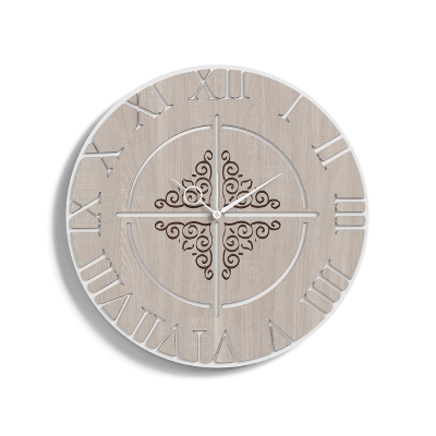 Orologio da parete in legno laminato inciso e tagliato a laser,diametro di 50 cm.