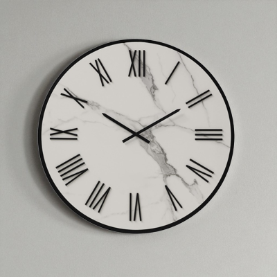 L'orologio da parete ANSEL in Kerlite Bianco con Lancette e Numeri romani Nero, rappresenta l'eccellenza del design con la sua fusione di materiali di alta qualità.