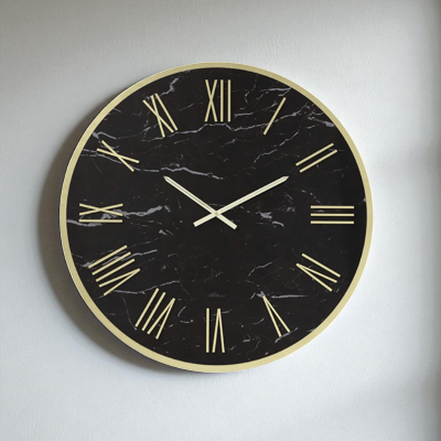 L'orologio da parete BLAISE in Kerlite Nero con Lancette e Numeri romani Oro, rappresenta l'eccellenza del design con la sua fusione di materiali di alta qualità.