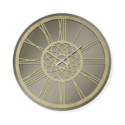 L'orologio da parete KIERAN in cristallo Bronzo con cornice a rilievo Oro e lancette e numeri romani Oro è una fusione di eleganza e stile contemporaneo.