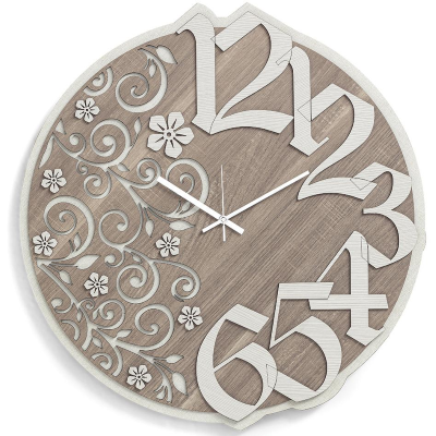Orologio da parete tondo moderno,in legno laminato inciso e tagliato a laser.