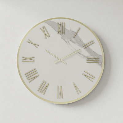 L'orologio da parete ZEPHYR in Kerlite Avorio con Lancette e Numeri romani Oro, rappresenta l'eccellenza del design con la sua fusione di materiali di alta qualità.