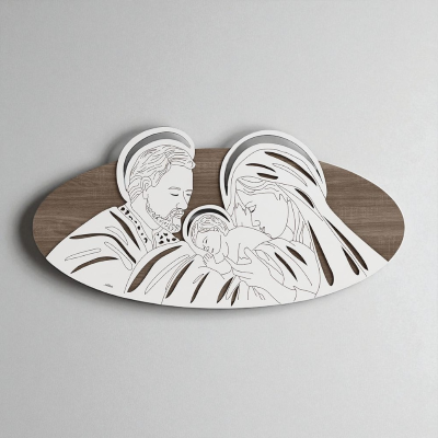 Capezzale moderno raffigurante la sacra famiglia, adatto per la vostra camera da letto.