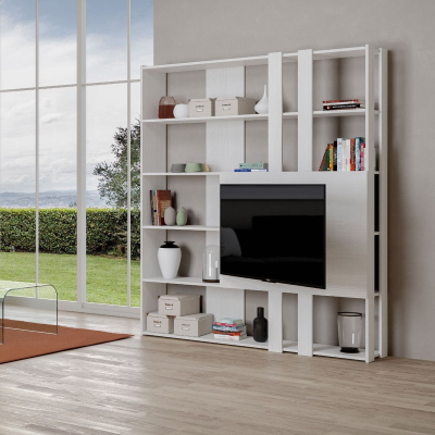 Libreria con porta TV in legno Bianco Frassino 178x204h cm - KATO MLibreria con porta TV in legno Bianco Frassino 178x204h cm - KATO MLibreria con porta TV in legno Bianco Frassino 178x204h cm - KATO M