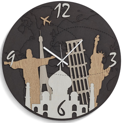 Orologio da parete rotondo,realizzato in legno laminato inciso e tagliato a laser,diametro di 30 cm.