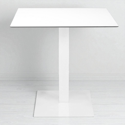 Resiste a temperature di oltre 160°C,graffi, abrasione ed urti,raggi UV e prodotti chimici domestici. La base piatta e quadrata del tavolino, così come la gamba centrale è realizzata interamente in metallo per offrire un supporto altamente stabile e solido sia alla struttura che al piano d’appoggio, anche in caso di uso professionale intensivo.