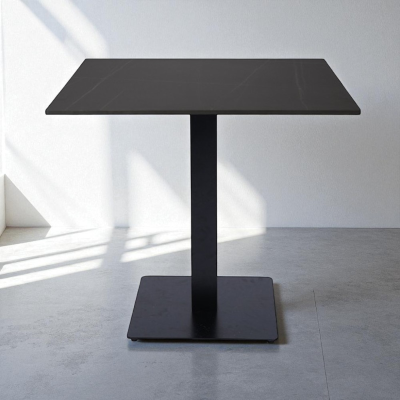 La superficie del tavolo misura 80x80 cm è resistente e facile da pulire. La base così come la gamba centrale è realizzata interamente in metallo antracite per offrire un supporto altamente stabile e solido sia alla struttura che al piano d’appoggio, anche in caso di uso professionale intensivo.