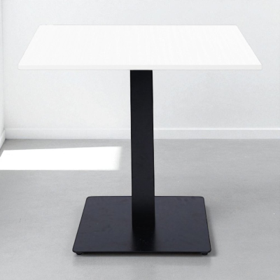 La superficie del tavolo misura 80x80 cm è resistente e facile da pulire. La base quadrata in laminato del tavolo, così come la gamba centrale è realizzata interamente in metallo antracite per offrire un supporto altamente stabile e solido sia alla struttura che al piano d’appoggio, anche in caso di uso professionale intensivo.