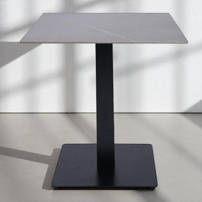 La superficie del tavolo misura 70x70 cm è resistente e facile da pulire. La base così come la gamba centrale è realizzata interamente in metallo antracite per offrire un supporto altamente stabile e solido sia alla struttura che al piano d’appoggio, anche in caso di uso professionale intensivo.