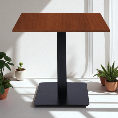 La superficie del tavolo misura 80x80 cm è resistente e facile da pulire. La base quadrata in laminato del tavolo, così come la gamba centrale è realizzata interamente in metallo antracite per offrire un supporto altamente stabile e solido sia alla struttura che al piano d’appoggio, anche in caso di uso professionale intensivo.