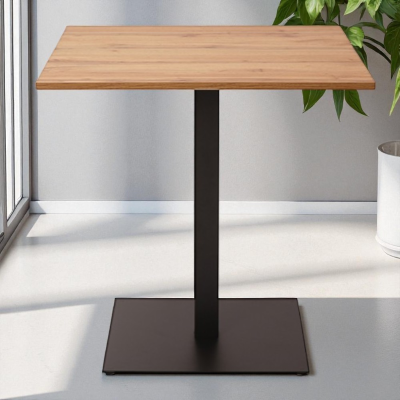 La superficie del tavolo misura 70x70 cm è resistente e facile da pulire. La base quadrata in laminato del tavolo, così come la gamba centrale è realizzata interamente in metallo antracite per offrire un supporto altamente stabile e solido sia alla struttura che al piano d’appoggio, anche in caso di uso professionale intensivo.