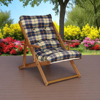 Poltrona Sdraio da giardino in legno di abete,facilmente richiudibile e trasportabile,regolabile in 3 posizioni.Cuscino in policotone,imbottito in spugna triturata,facile da rimuovere e pulire.
