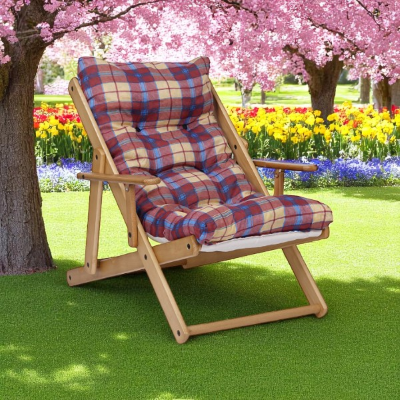 Poltrona Sdraio da giardino in legno di abete,facilmente richiudibile e trasportabile,regolabile in 3 posizioni.Cuscino in policotone,imbottito in spugna triturata,facile da rimuovere e pulire.