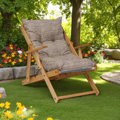 Poltrona Sdraio da giardino in legno di abete,facilmente richiudibile e trasportabile,regolabile in 3 posizioni.Cuscino in policotone,imbottito in spugna triturata,facile da rimuovere e pulire.