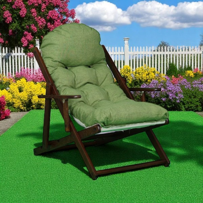 Poltrona Sdraio da giardino in legno di abete tinto noce,facilmente richiudibile e trasportabile,regolabile in 3 posizioni.Cuscino in policotone,imbottito in spugna triturata,facile da rimuovere e pulire.
