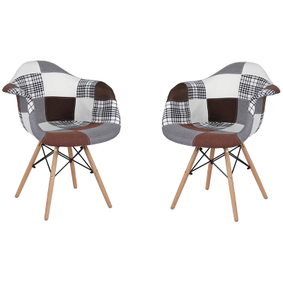 Poltrona sedia in tessuto patchwork marrone imbottita EMILY SET 2 PEZZI