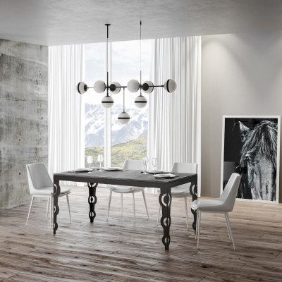 Le allunghe sono della stessa finitura del piano. Le gambe in ferro sono verniciate antracite.