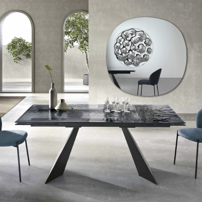 Table extensible WATERS 240 cm avec piètement en métal noir et plateau en verre fumé